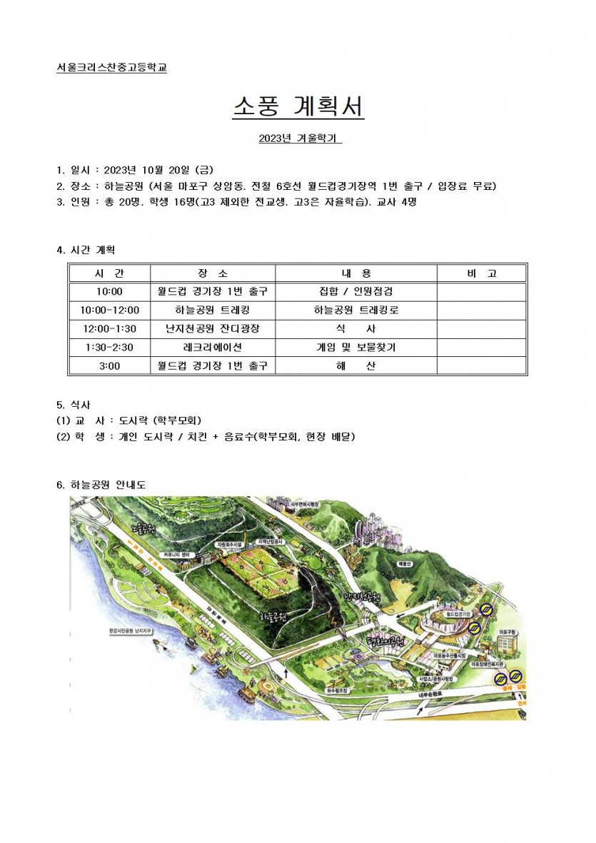 올해 소풍 장소는 월드컵공원 내 '하늘공원'입니다.